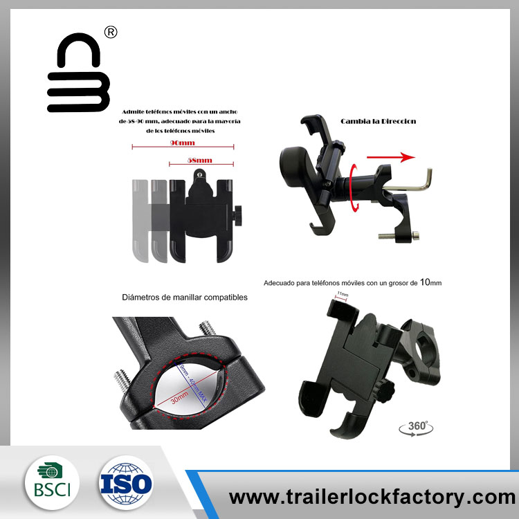உயர் இணக்கத்தன்மை மோட்டோ மொபைல் ஹோல்டர் 4 முதல் 6.5 இன்ச் வரையிலான மொபைல் போன்களுக்கு ஏற்றது, 50 மிமீ முதல் 95 மிமீ வரை சரிசெய்யக்கூடிய நீளம், அதிகபட்ச தடிமன்: 11 மிமீ, கைப்பிடி விட்டம்: 19-40 மிமீ.