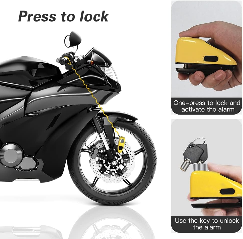 · உயர்-டெசிபல் அலாரம்: மோட்டார் சைக்கிள் அலாரம் பிரேக் டிஸ்க் லாக் சென்சார் அலாரம் தாக்கத்தையும் இயக்கத்தையும் கண்டறிந்து, உங்கள் மோட்டார் சைக்கிளின் பாதுகாப்பை உறுதி செய்கிறது. 110 டிபி அலாரம் வகுப்பு உரத்த அலாரம் ஒலியை வெளியிடுகிறது.